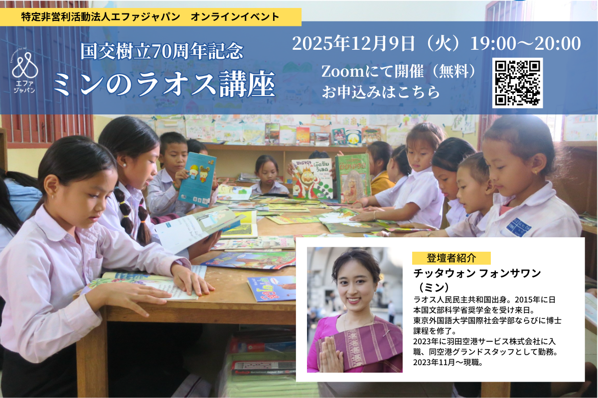 エファジャパンは、全国の地⽅公共サービスに携わる⼈たちが取り組んだ社会貢献活動「アジア⼦どもの家」の⽀援事業を引き継ぎ、⼦どもたちの未来を拓くための教育と福祉、緊急⼈道⽀援をに取り組む国際協⼒NGOです。