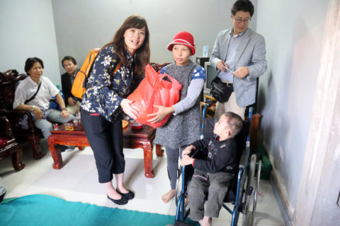 最初の訪問地はベトナム・ハイフォン市。12月18日午前に岡山県本部からご支援をいただいているフンティエン村の障がい児クラブを訪問し日本からのプレゼントを贈り、子ども達と交流しました。午後からは村の中を歩いて移動しながらクラブのメンバーのうち5名の家庭を訪問、必要最低限の家財道具しか揃っていないメンバーの家庭の実情を見ていただきました。「訪問した家庭の中には白湯でもてなしてくれた家もあって、涙が出そうでした」。ツアー団長の岡山県本部・古林委員長の感想です。12月19日にはハイフォン市のソーシャルワークセンターを訪問し、ハイフォン市における障がい児(者)支援などソーシャルワークの現状に対する意見交換などを行ないました。