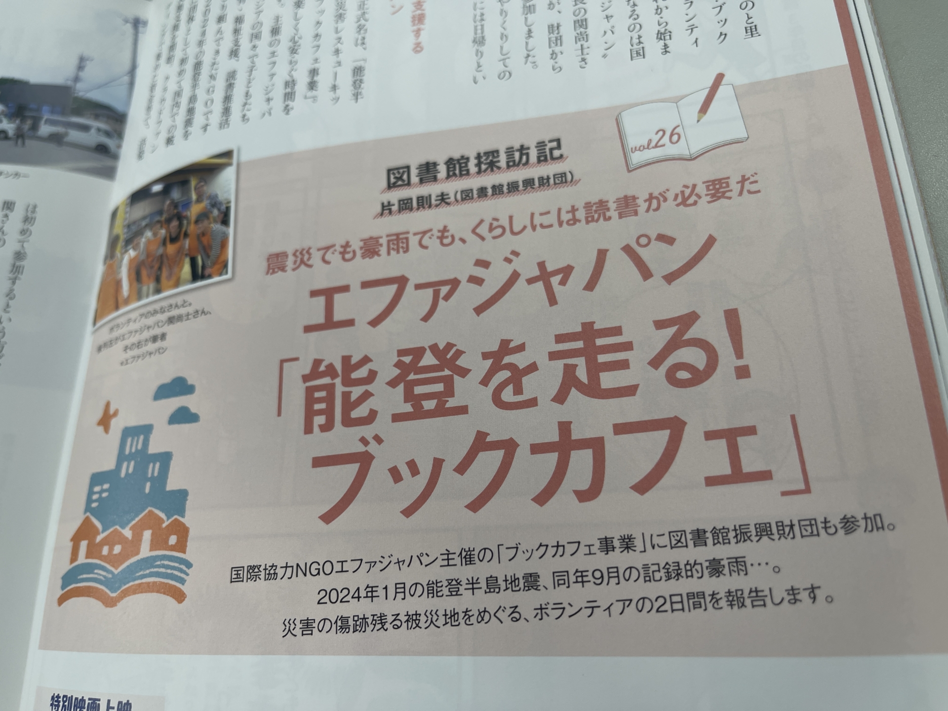 公益財団法人図書館振興財団の機関紙「図書館の学校」にエファジャパンが行っているブックカフェの記事を書いていただきました。