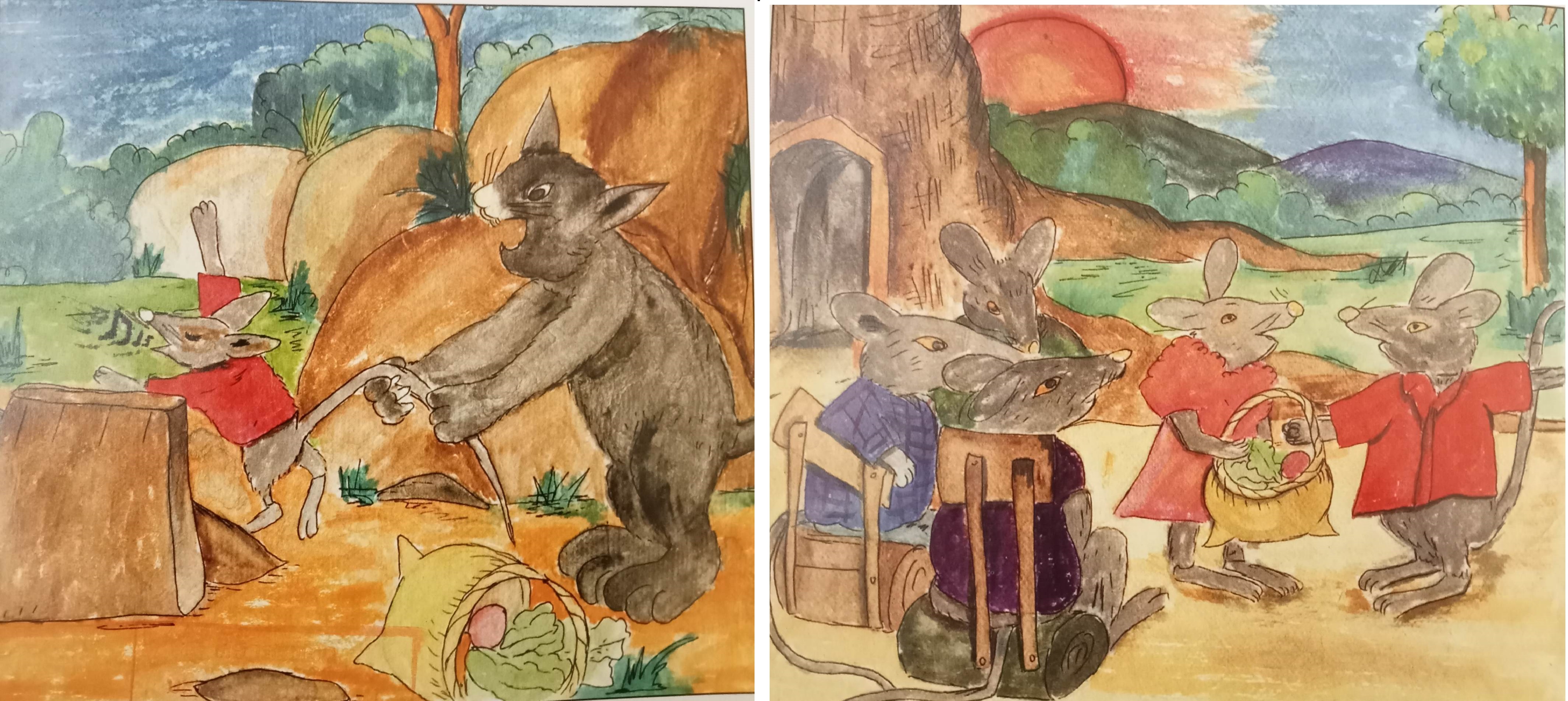 ຕໍ່ມາມື້ໜຶ່ງ ພວກໜູກາຍມາເຫັນຈຶ່ງເອີ້ນຖາມວ່າ“ລຸງແມວເອີຍ! ເປັນຫຍັງລຸງຈຶ່ງບໍໄປຊອກຢູ່ຫາກິນແດ່?”